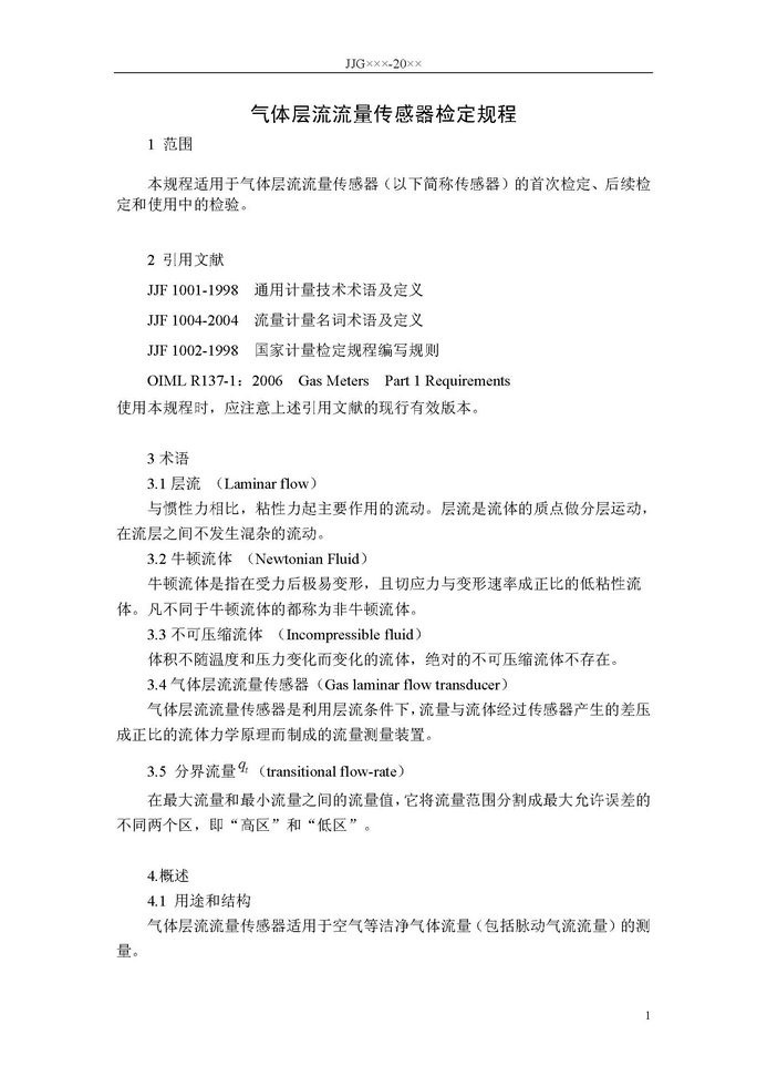 《氣體層流流量傳感器檢定規程》JJG7 36- 20XX