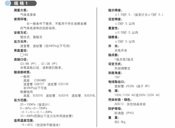 本產(chǎn)品在壓力表中內(nèi)置光電開(kāi)關(guān),可用于控制大容量開(kāi)關(guān)的報(bào)警裝置