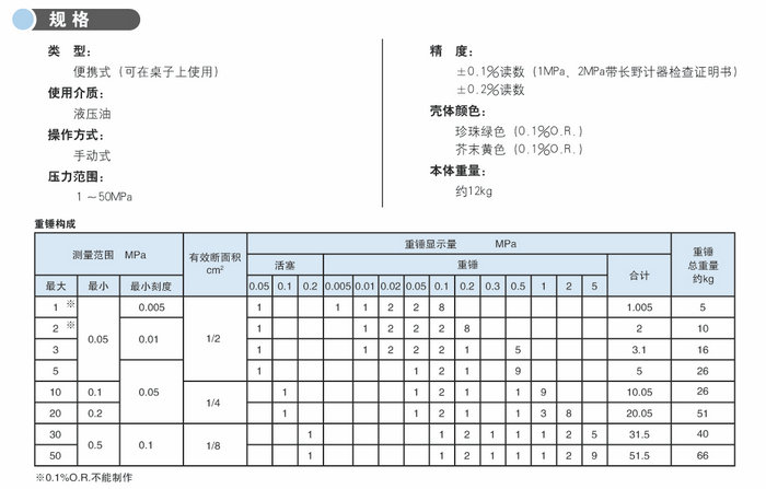 本產品是攜帶式重錘壓力標準儀器,采用手搖泵加壓和減壓
