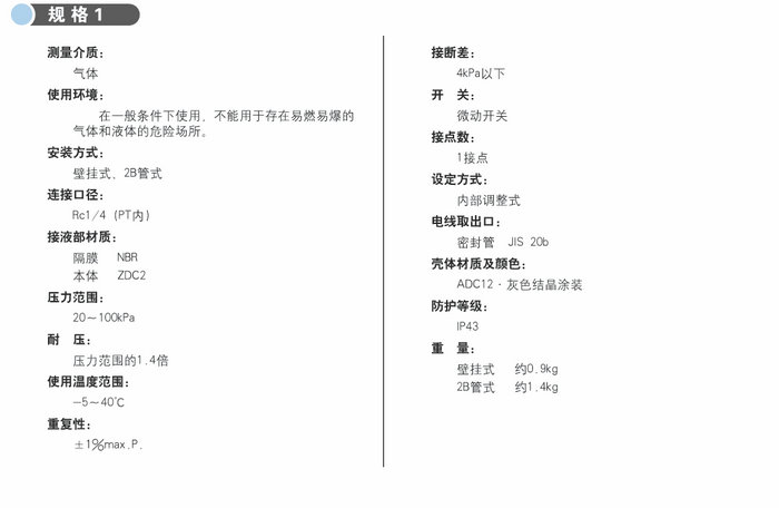 應用于氣體壓力發生器輸出壓力為20-100kPa的場合,是一種高性能的壓力開關