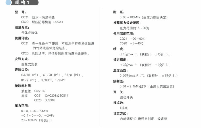 本壓力開結構簡單,微動開關為直接驅動型, 適用于電力、化工行業,常用于設備報警控制