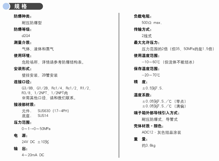 耐壓防爆結(jié)構(gòu),其壓力感應(yīng)部采用半導(dǎo)體應(yīng)變片并提供有內(nèi)置線(xiàn)圈的防爆箱。